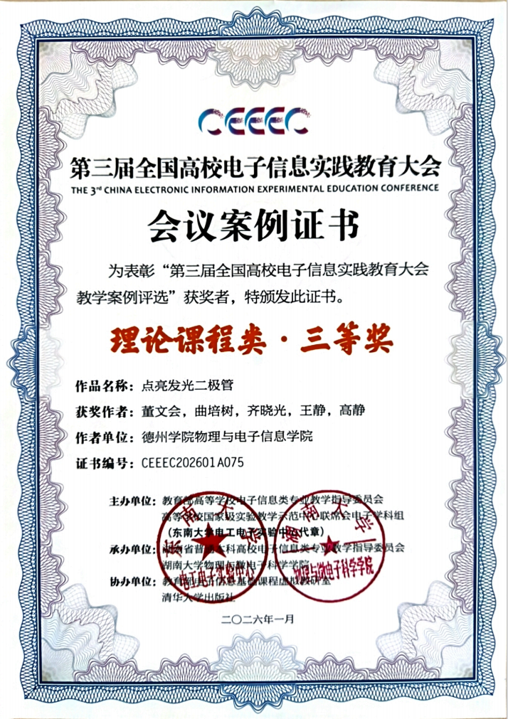 我院董文会老师团队、王治强老师团队报送的案例获理论课程类三等奖,张秀梅老师团队报送的案例获产教融合类三等奖。此次斩获佳绩,既是教师团队深耕教学、锤炼能力的实践成果,更是学院深化专业教学改革、强化实践育人的有力佐证,体现教学改革对专业提质增效的重要作用。未来,我院将以此次获奖为重要契机,推广优秀教学经验,激励教师深耕教改探索新路,夯实专业教学根基,借助山东省现代产业学院平台,全力推动电子信息、物联网工程省级一流专业建设工作走深走实,为培养电子信息类新质人才持续赋能。