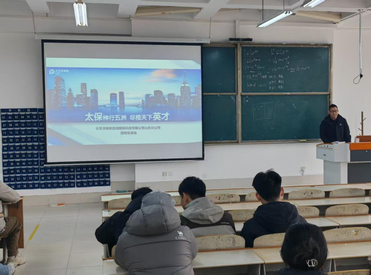 为拓宽毕业生就业渠道,搭建精准高效的校企对接平台,助力学生高质量就业,12月22日,物电学院在求真楼举办了太平洋保险在线服务科技有限公司专场招聘宣讲会,公司总部及山东、上海、深圳、四川四家分公司共同参与此次招聘。