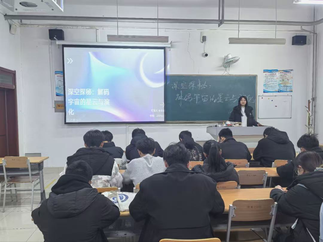 为了普及天文知识、激发同学们对宇宙探索的热情、提升科学素养,12月9日,物电学院在明理楼118举办“深空探秘:解码宇宙的星云与演化”主题科普活动