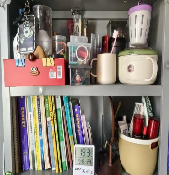 三是简易易维护:拒绝复杂分区,用普通收纳盒归集零散物件并贴签标识,日常用完随手归位,人人都能轻松维持寝室整洁舒适。