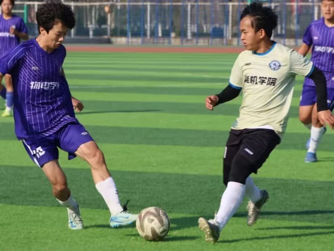 赛场上,男足队员们以清晰明确的战术思路搭建稳固攻防体系,精准长传把控节奏,果断拦截稳固防线,每一次攻守转换都尽显沉稳姿态与强劲实力;他们以执着坚毅的奔跑串联全场,凭灵动突破撕开防线,靠默契团队配合凝聚战力,在流畅进攻中彰显协作力量。整个赛程角逐激烈,队员们始终全力以赴,将满腔热忱倾注于每一次触球、每一次冲刺,绿茵场上飞驰的一道道矫健身影,正是物电学子“无畏挑战、锐意进取”精神风貌的生动印证,尽显青春拼搏的热血与担当。