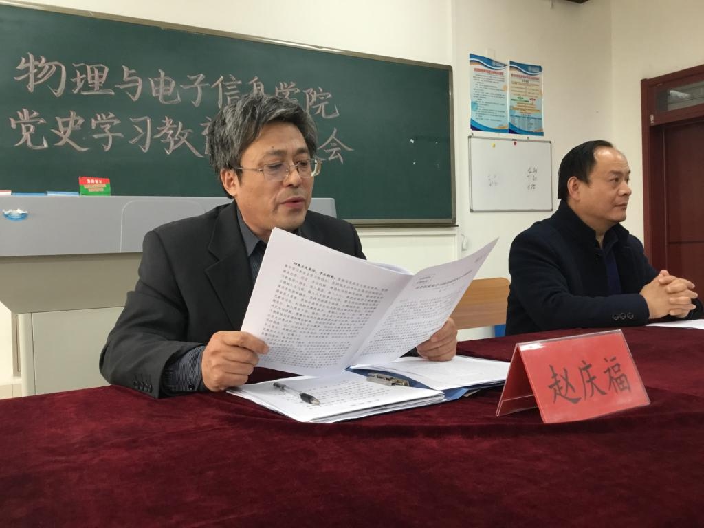 为了深入贯彻习近平总书记在党史学习教育动员大会上的重要讲话精神,促进物电学院开展党史学习教育。使同学们充分认识到开展党史学习教育的重大意义,增强物电学院广大学子党史学习教育的责任感。物电学院于3月17日下午4点开展党史学习教育大会,物电学院赵庆福书记、刘汉平院长主持本次活动。