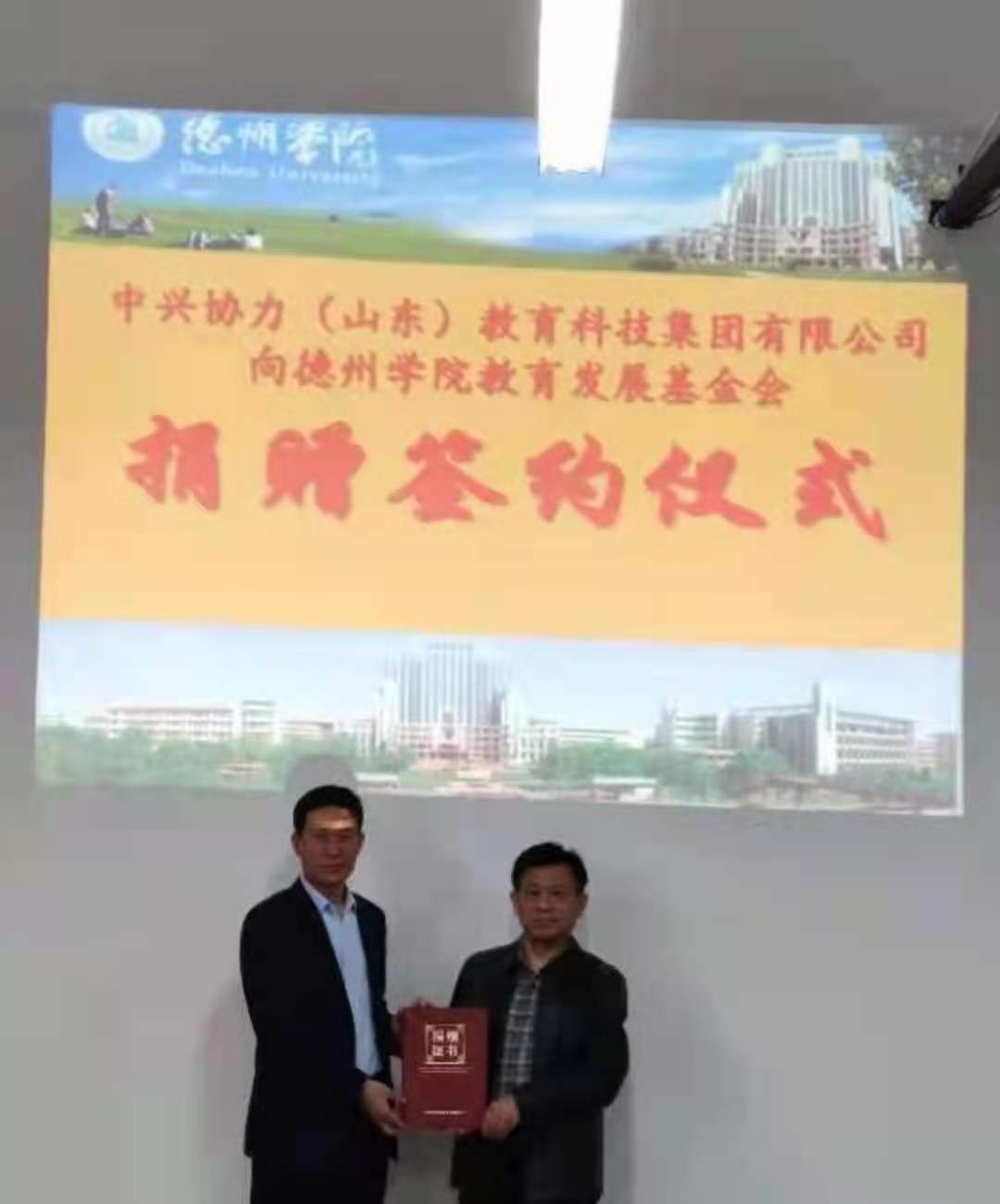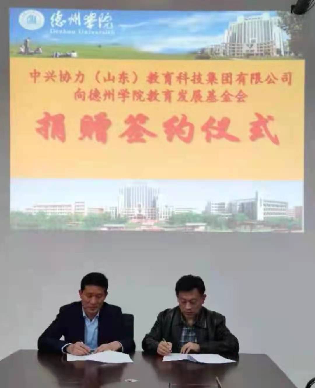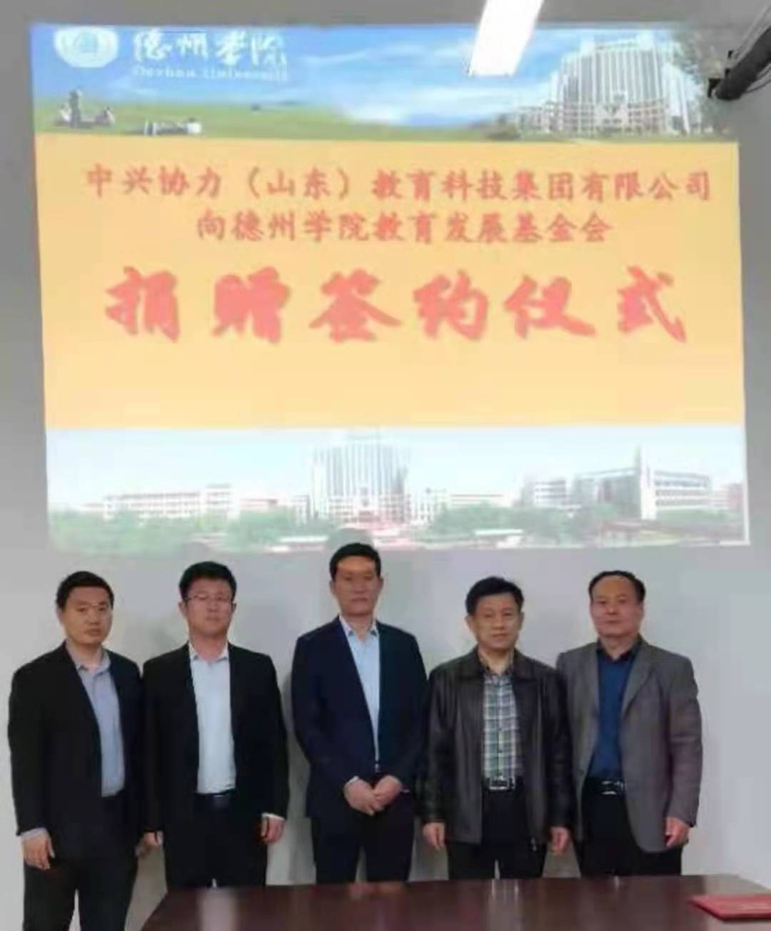 在060net永利建校50周年之际,中兴协力(山东)教育科技集团有限公司向学校教育发展基金会签约捐赠仪式在启智楼0410举行。中兴协力(山东)教育科技集团有限公司董事长陈彦彬出席了签约仪式,合作发展处高国武处长代表060net永利教育发展基金会接受了捐赠,并向中兴协力公司颁发捐赠证书。永乐高60net部分教师参加了捐赠仪式。