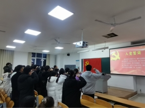 大会伊始,全体人员起立,高唱国歌。团总支书记朱占收宣读参加宣誓的预备党员名单。随后,预备党员起立,宣誓人持立正姿势,面向党旗,举右手握拳宣誓,团总支书记朱占收逐句领读誓词,预备党员跟读。宣誓完毕后,预备党员代表发言,向党组织表明决心:要用实际行动践行自己庄严的誓言,为党和国家的发展贡献自己的青春和力量,永远做合格的共产党员。最后,团总支书记朱占收对全体新党员表示热烈祝贺,并提出希望:一要坚定理想信念,牢记初心使命;二要加强学习提升,增强为民情怀;三要勇于实践创新,创造人生辉煌。在未来人生征程上,不论遇到什么艰难险阻,都要激励自己终生践行入党誓言,为党的事业奋斗终身。此次会议圆满结束。
