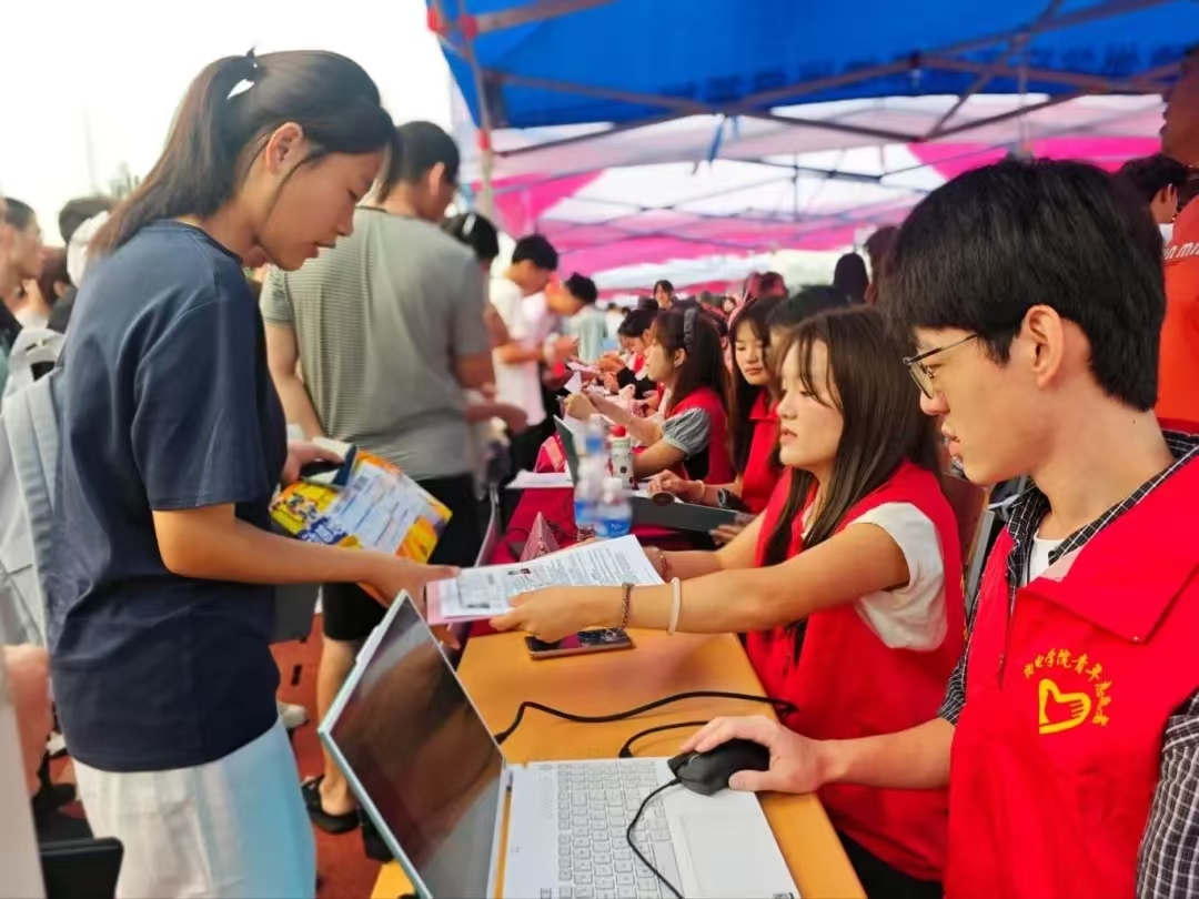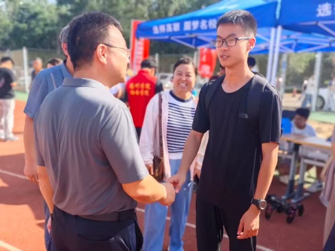 唐荣霞老师以双重身份到场:既是物电教师,也是一名2025级电子信息工程专业新生的母亲。她亲手把孩子交付给学院,眼中满是期许与信任——这场 "手递手" 的入校礼,把教育的重量和温度,都揉进了初秋的风里。