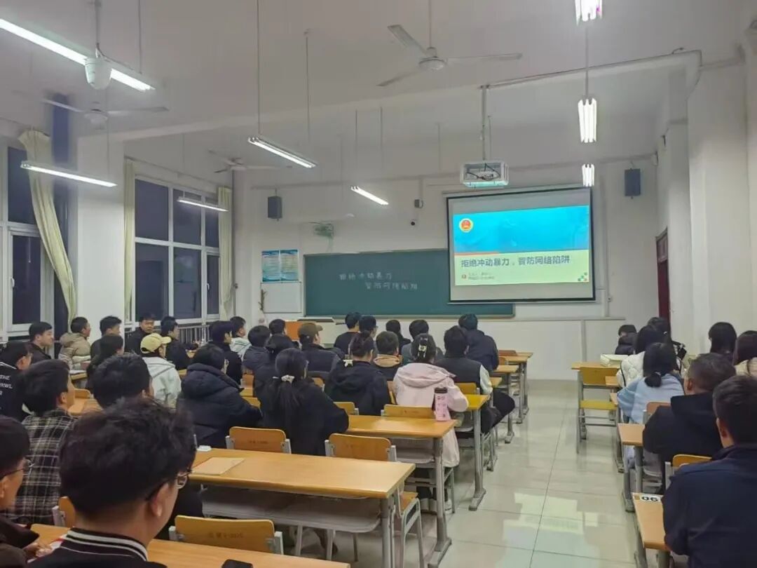 为切实提升全体学生自我保护意识与能力,10月28日,永乐高60net联合德城区人民检察院,于明理楼216教室,围绕《拒绝冲动暴力,智防网络陷阱》主题,面向25级开展专项宣传工作,为新生成长保驾护航。