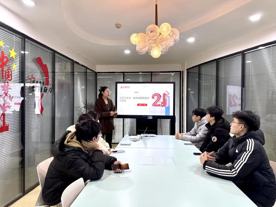 为深化产教融合,拓展优质就业岗位,以高质量党建引领校企协同育人,1月22日,物电学院党委书记申青林、教师党支部书记王晓欣、学生党支部书记明红霞、毕业班辅导员赵剑桥带领毕业生代表赴华清远见教育科技集团济南分公司,开展“党建联建聚合力 校企联动谋新篇”党建共建暨访企拓岗专项行动。