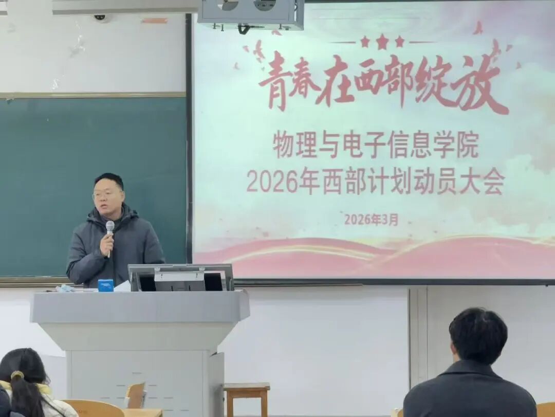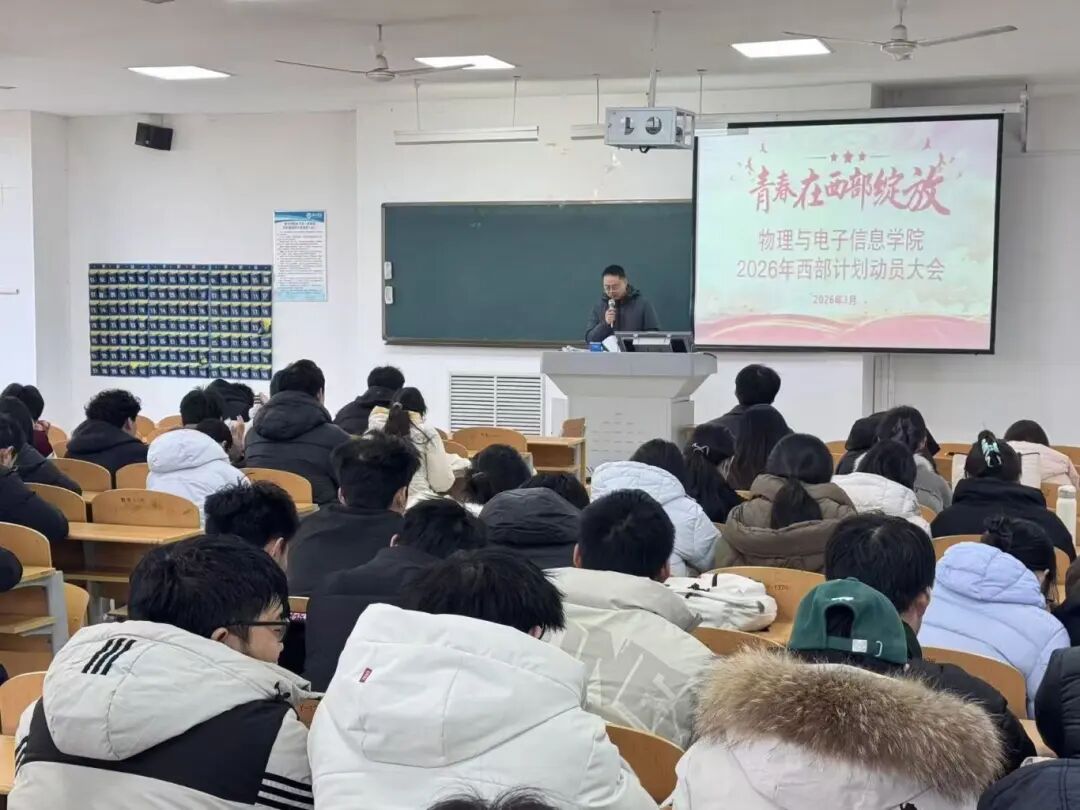 为深入贯彻落实国家关于高校毕业生就业工作的决策部署,进一步推进2026届毕业生高质量就业,3月9日,物电学院于明理楼126教室召开2026届毕业生春季学期就业促进会暨西部计划动员会,2026届毕业生党员、学生干部及毕业生同学参加此次会议。