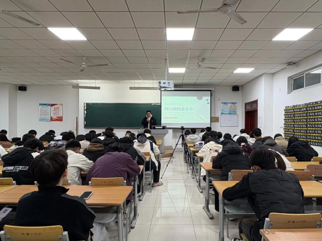 为帮助大学生高效备战四六级,提升通过率与成绩水平,11月9日,物电学院在明理楼225教室举办四六级经验分享会。本次活动特邀23级互联专业卢嘉欣、郝兴华两位四六级高分过级的同学分享实用备考策略与应试技巧,助力学子在考场上从容应对,顺利通关。